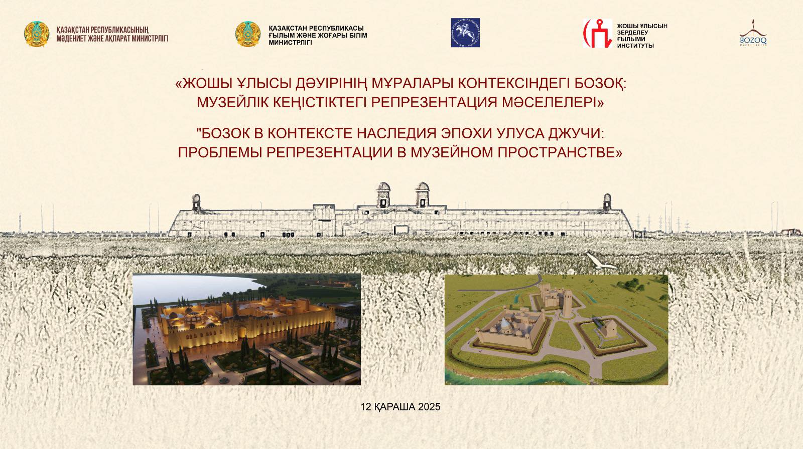 2025 жылғы 12 қараша күні сағат 9:00-де ҚР Мәдениет және ақпарат министрлігінің Мәдениет комитетіне қарасты «Бозоқ» мемлекеттік тарихи-мәдени музей-қорығы, ҚР Ғылым және жоғары білім министрлігінің Ғылым комитетіне қарасты Ә.Х. Марғұлан атындағы Археология институты және Жошы ұлысын зерттеу жөніндегі ғылыми-зерттеу институты бірлесіп «Жошы Ұлысы дәуірінің мұралары контексіндегі “Бозоқ”: музейлік кеңістіктегі репрезентация мәселелері» атты халықаралық ғылыми-тәжірибелік конференция өткізеді.