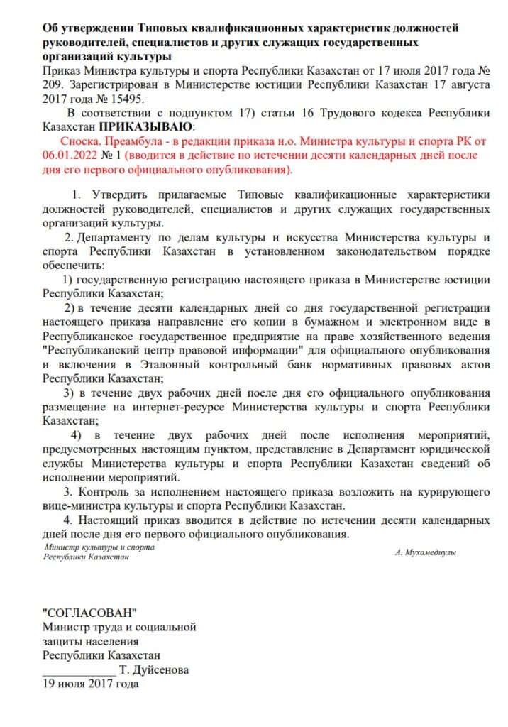 Об утверждении Типовых квалификационных характеристик должностей руководителей, специалистов и других служащих государственных организаций культуры